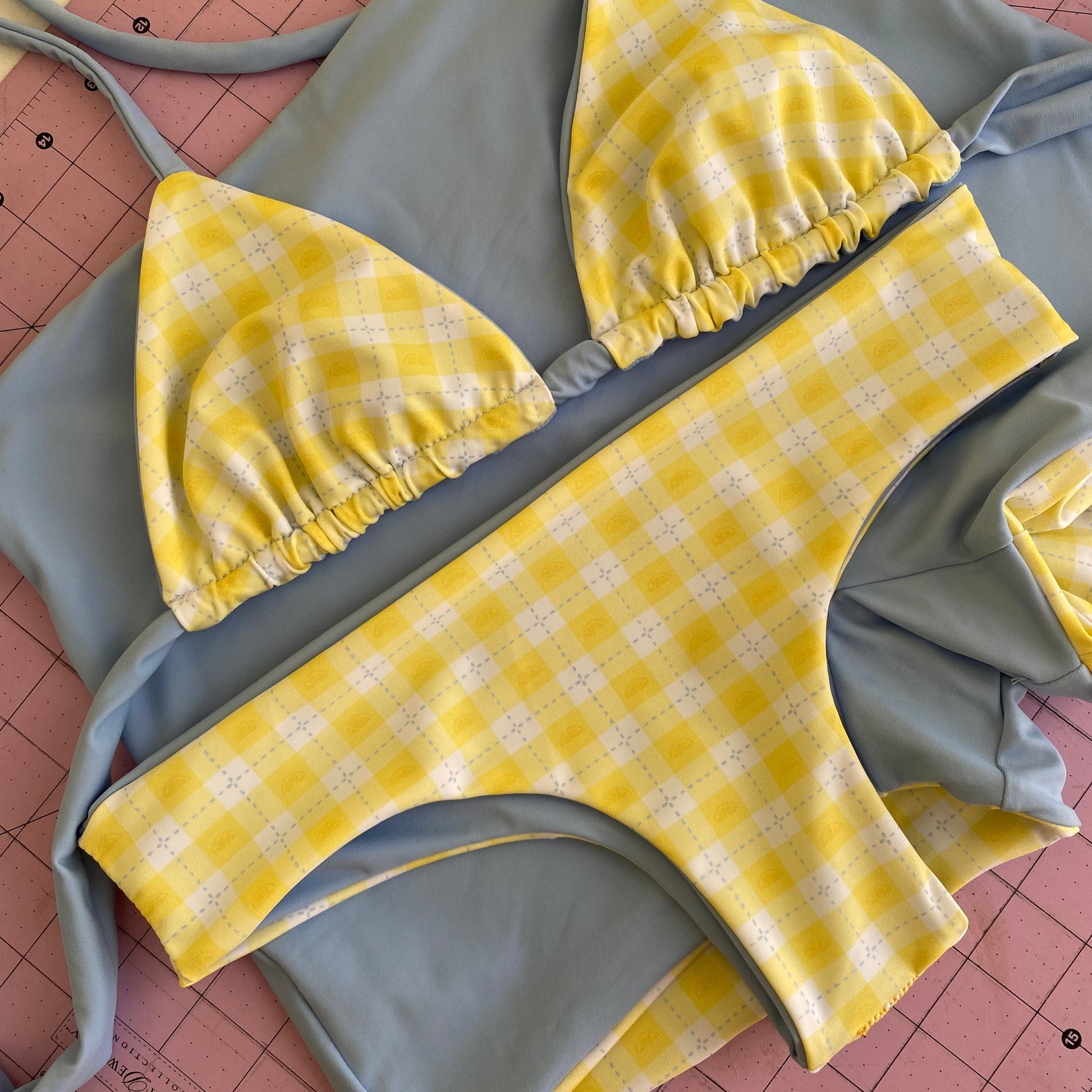 The low rise bottom of your dreams in the cutest Lemmon Gingham print! Reverses to our essentials Forget-Me-Not Blue.