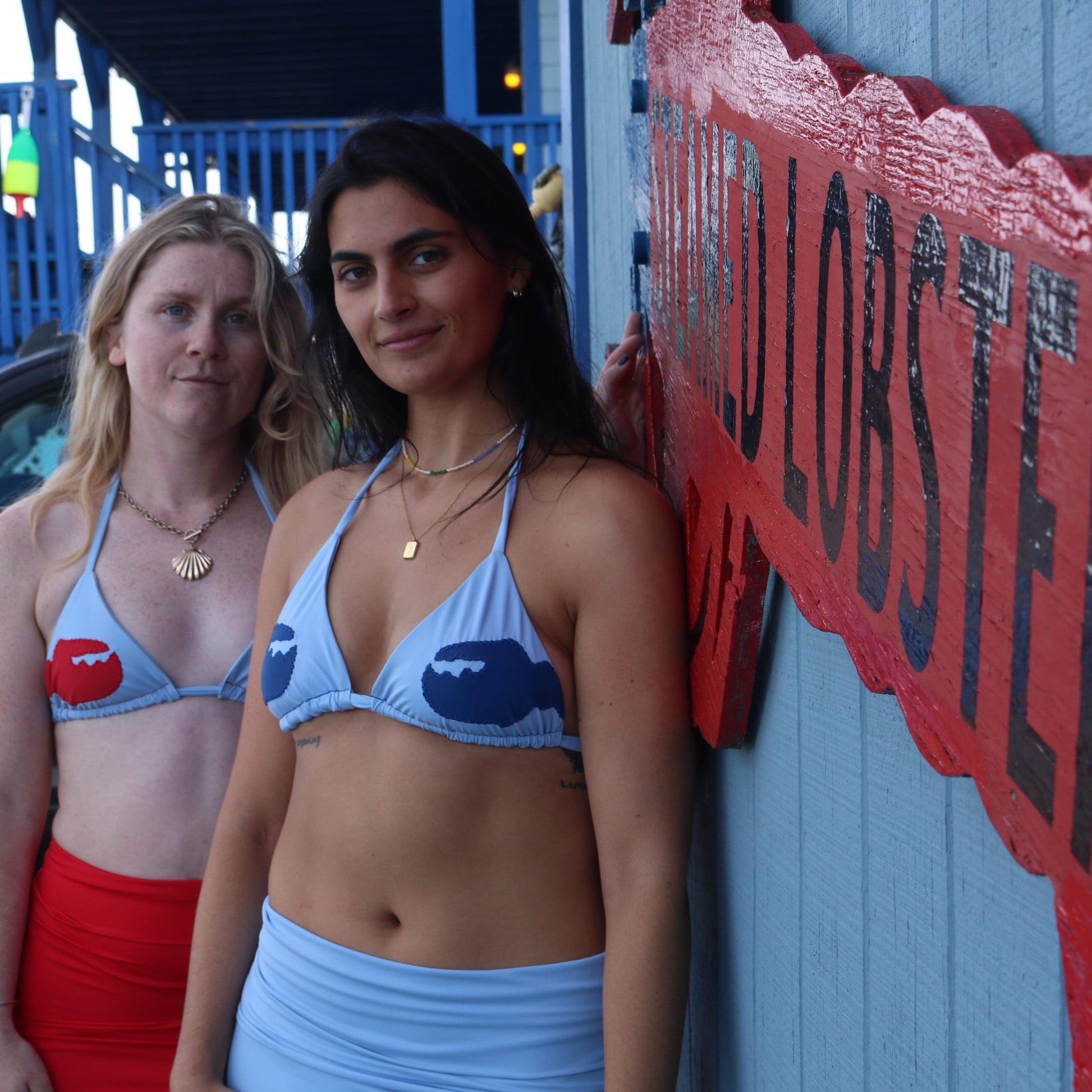 Our best selling Leah Top with lobster claw patches. These claws are drawn on scrap fabric and carefully sewn on to create a classic nautical feel.